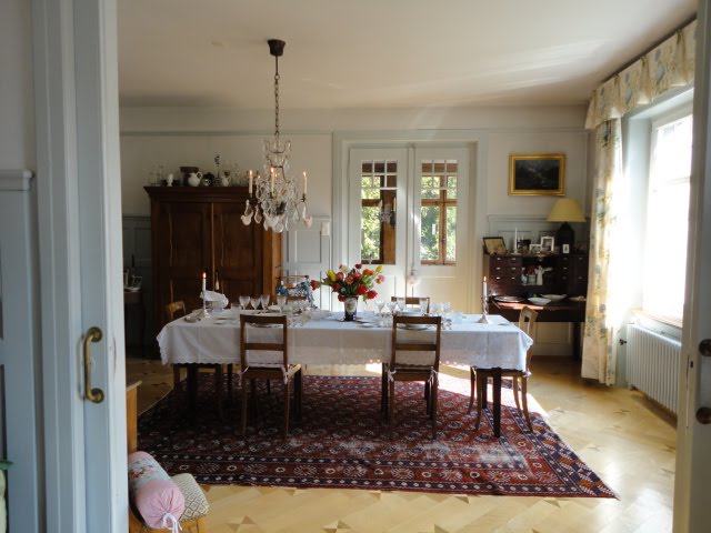 Your friend's dining room looks uncannily like one of the Swedish dining rooms in the Rene Stoltje book, The Swedish Room. Even though it's in Suisse. Fun new linky. — Jane F.