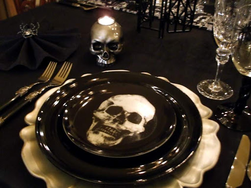Halloween tablescapes have got to be the most fun of all! Love the ones you have here! It's hard to believe, but that second one, despite being scary, is actually elegant too with the blacks and silvers.