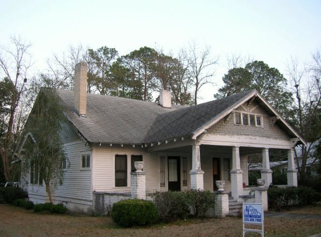 The home shown below is the Tyson-Stedham House on Hutchinson Avenue (US Highway 41) in Adel, Georgia. This Arts and Crafts home was built in 1912, is 2,250 sq. ft and has two bedrooms and one bath. (Originally, the house was a three bedroom home with an out house.) Dustin said when the restoration is complete, it will be a two bedroom home with two bathrooms.