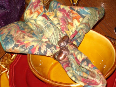 Lynne, all of the acorns (those napkin rings are so cute), the leaf plates and dinnerware, the pheasant centerpiece – all lovely! What a wonderful fall table – or I should say both settings. ~ Robyn
