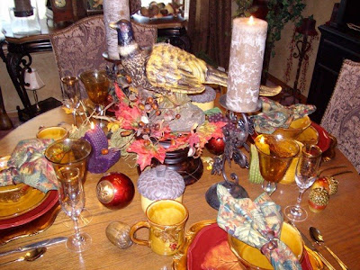GM susan and Lynne, As always another great posting. I love the pheasant.What a fun table for the fall, so inspiring. Lynne you are the best. I have to get to Big Lots and go treasure hunting. I really liked the touch of the acorns.It is so nice to visit a fellow rmser in another venue. Thankyou for sharing all these great ideas. I need to go pull something fallish together. smiles Kathysue[rms]